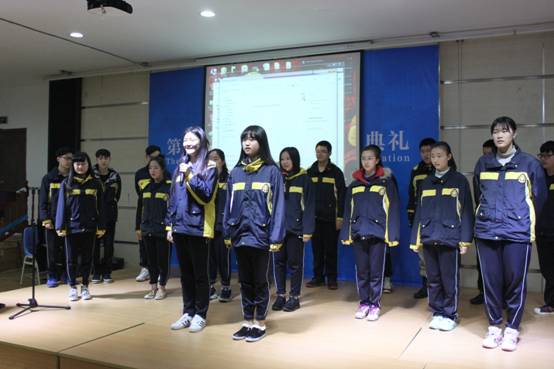 高一(1)班的同學(xué)們?yōu)榇蠹耀I(xiàn)上了一首動(dòng)聽(tīng)的歌曲,他們對(duì)學(xué)長(zhǎng)學(xué)姐們的美好祝愿此時(shí)都化作美妙動(dòng)聽(tīng)的音符,縈繞整個(gè)禮堂。