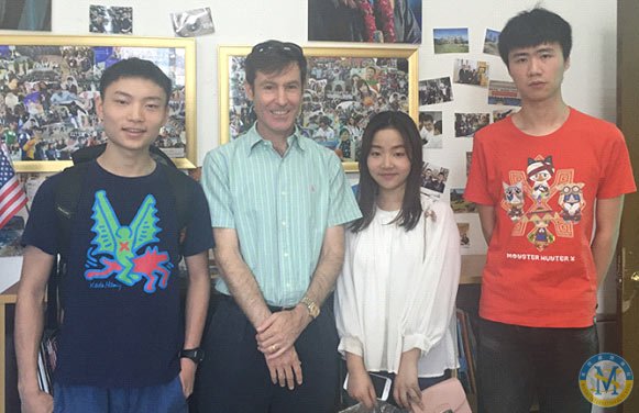 6月17日下午,2015級畢業(yè)生Carina Chen(現(xiàn)就讀于UMass Amherst, 馬薩諸塞大學安姆斯特分校)Alan She(現(xiàn)就讀于California Lutheran University 加州路德大學) 以及David Yu (University of Colorado-Boulder 科羅拉多大學波德分校)應邀回到美視與中美英才班主任Dan Plaut 以及中美英才班的外教老師和大學申請老師一起分享了他們在過去一年在美國經歷的點點滴滴。
