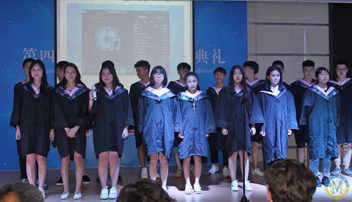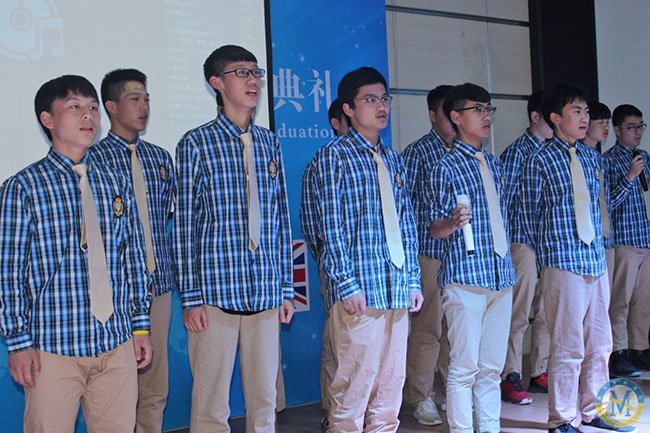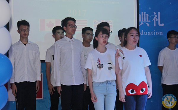 每屆中美英才班畢業典禮,高一高二的學弟學妹都會為即將離開的學長學姐們送上祝福。他們在一年或是兩年后也會像如今的學長學姐們在忙碌而努力之后,收獲成長和成就,去往心儀大學開辟另一片新天地。他們將祝?;癁楦杪?,為他們吟唱送歌。