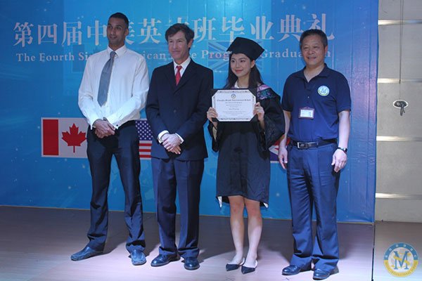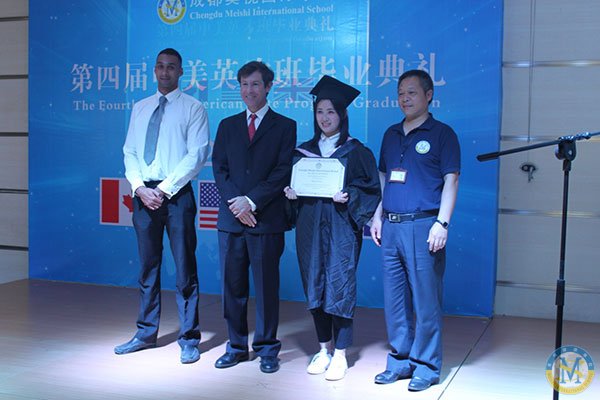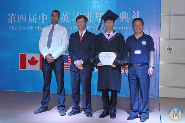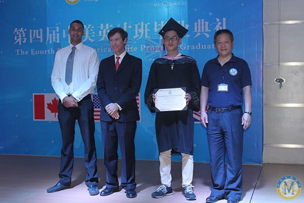 中美英才班主任Dan Plaut 先生、中美英才班首席教師Lee Ricketts先生以及美視中學部校長徐德雄先生向畢業生們頒發結業證書。