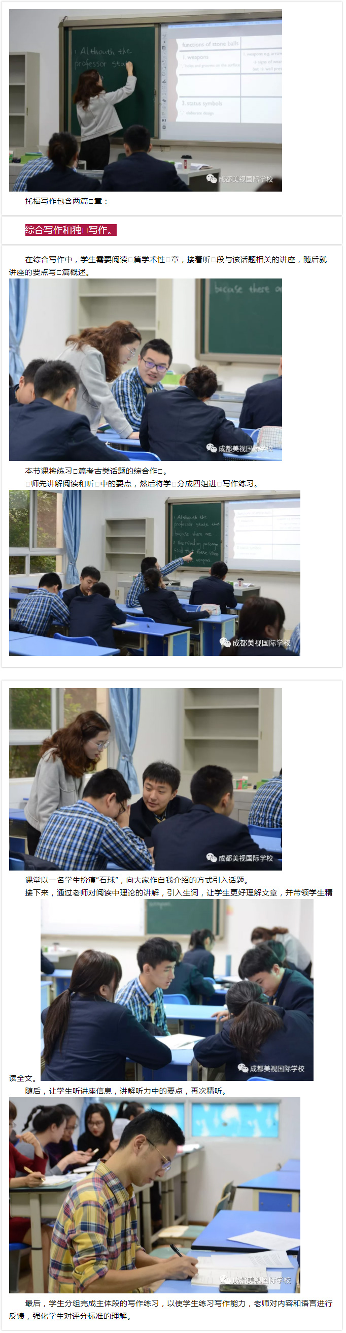 為了給老師們提供展現自己教學思想和教學能力的舞臺,提供教師相互學習,取長補短的良機。近期,國際英才班迎來了托福寫作和英語閱讀兩節公開展示課。參加此次展示課的有中國部中學校長宋偉、中學部中方老師、托福課程老師以及外籍教師。