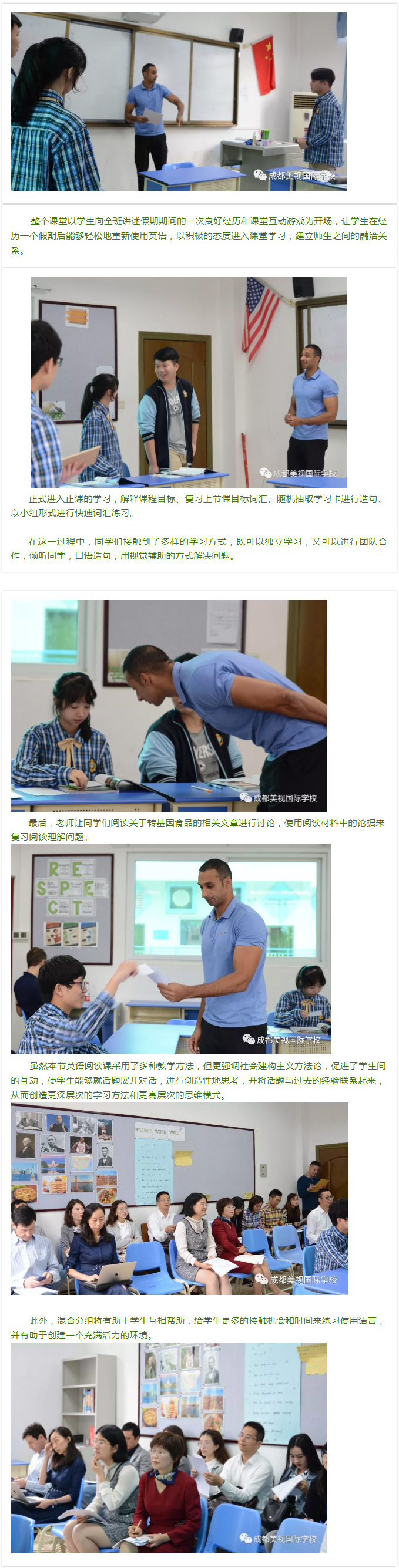 在美視鼓勵下,學生也成為積極主動、富有愛心的學伴終生的智者,并且學習和掌握對不同意見和看法的認知及理解的能力。而這一切都是通過國際英才班的國際教育理念以及系統嚴格的教學體系來實現的。